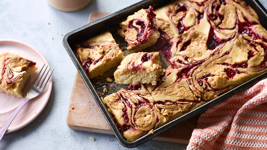 Peanut butter jelly traybake